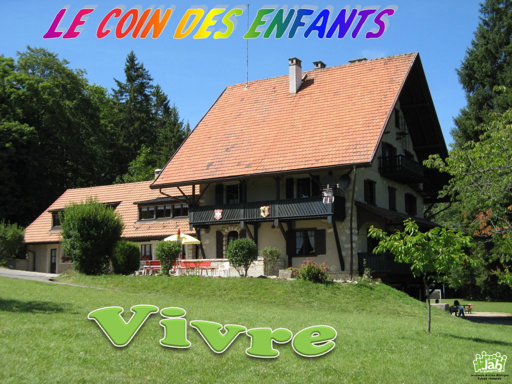 ¨VIVRE¨ : c’est le nom de la colonie où se déroulent les camps d’été pour les enfants de 7 à 12 ans. Etablie à 900 mètres d’altitude, juste à la sortie d’Arzier (VD) sur la route de St-Cergue, la propriété offre une magnifique vue sur le Mont-Blanc. Elle met à disposition différents terrains de jeux (foot, badminton, basket…), une piscine, une salle polyvalente, un coin bibliothèque, etc. Chaque enfant a de quoi s’amuser en toute sécurité. Au programme des séjours, tout ce que les enfants aiment : sport, jeux, bricolages, baignades et autres découvertes… dont celle, chaque matin, d’une histoire de la Bible. |